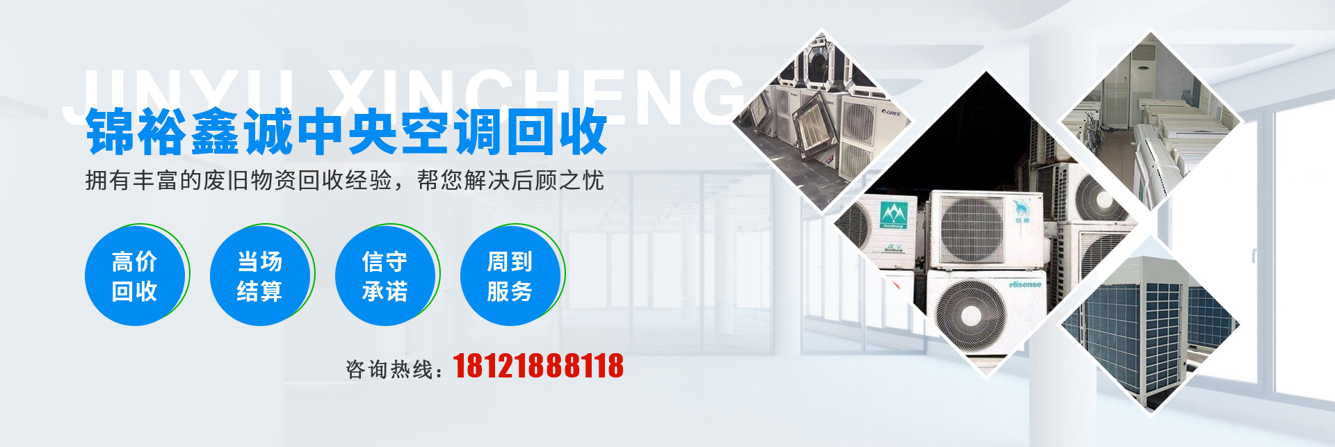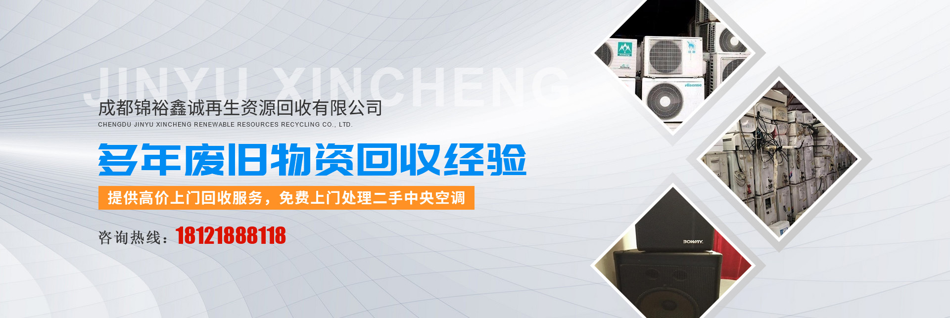 成都錦裕鑫誠(chéng)再生資源回收有限公司位于成都市新都區(qū),公司相關(guān)負(fù)責(zé)人均有10余年回收經(jīng)驗(yàn)。公司擁有20多位長(zhǎng)期從事二手物資回收的專(zhuān)業(yè)人員,技術(shù)力量雄厚,專(zhuān)業(yè)進(jìn)行各種廢舊物資的回收。我們致力于成都市區(qū)和郊縣以及跨省的大中型企業(yè)廢舊物資回收業(yè)務(wù)。 成都錦裕鑫誠(chéng)再生資源回收有限公司專(zhuān)業(yè)回收二手中央空調(diào)、酒樓、賓館、KTV、網(wǎng)吧、酒店桌椅、廚房設(shè)備、空調(diào)、中央空調(diào)、茶樓藤椅、機(jī)麻、KTV酒吧專(zhuān)業(yè)音響、功放點(diǎn)歌設(shè)備、火鍋店全套設(shè)備,酒店、KTV設(shè)備